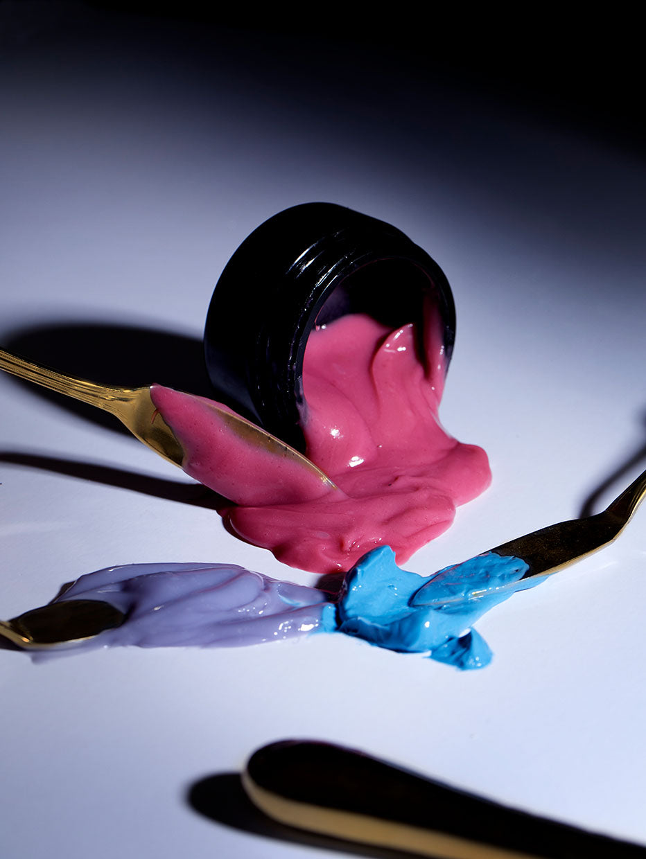 Chlorophyll greens for renewal. Hibiscus pinks for joy. Spirulina indigo for cellular calm.