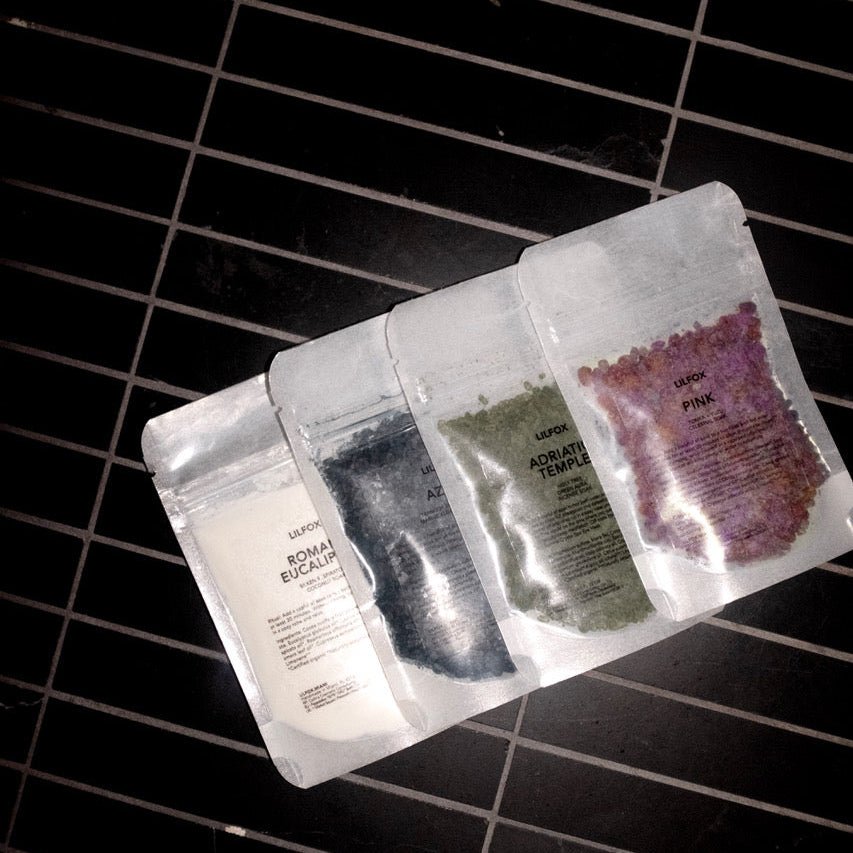 Elevate your bath into a full-spectrum ritual with The Art of Bathing, a collection of LILFOX’s signature mineral-rich soaks: AZURE, ADRIATIC TEMPLE, PINK, and ROMAN EUCALIPTO.