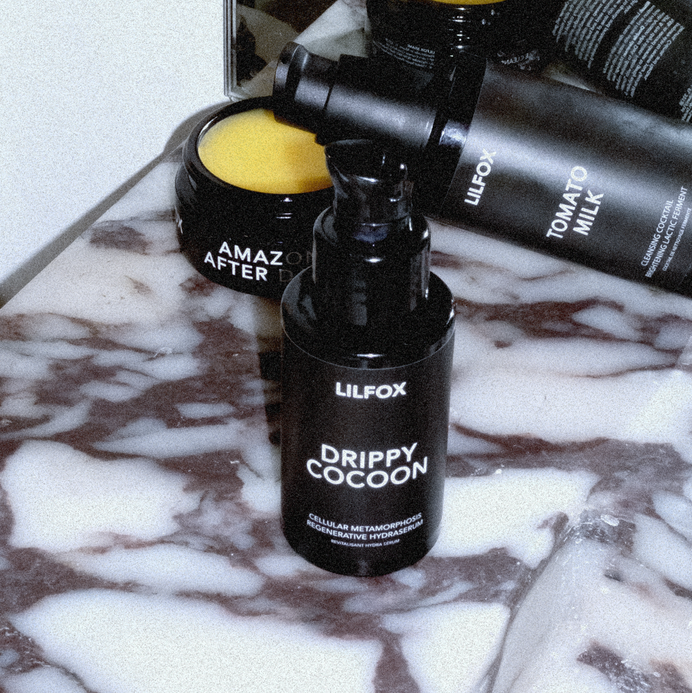 Layer Flower Goo before Drippy Cocoon — the lighter texture allows its actives to absorb fully. Mist before, between, and after each layer to keep skin damp, boost penetration, and seal in softness. Follow with your favorite LILFOX skin treatments & nectars.